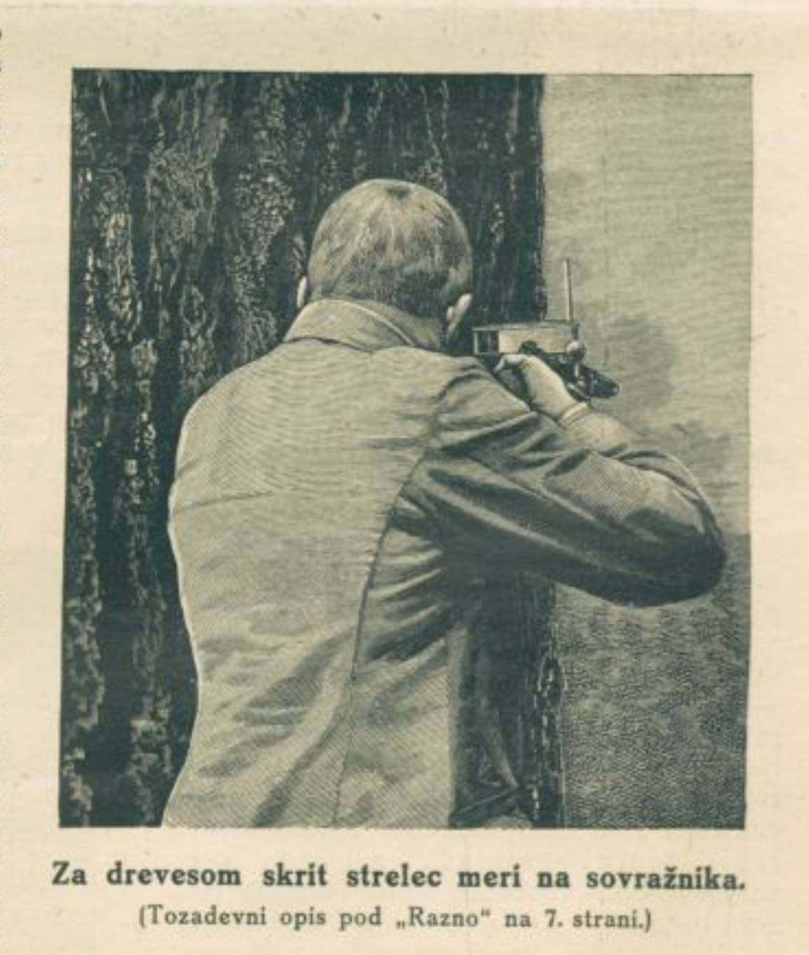 З удосконаленням вогнепальної зброї, з підвищенням влучності гвинтівок та, як наслідок, переходу від залпового вогню до індивідуальної стрільбі, повстала проблема, як вберегти стрільця від вогню ворога? Один із варіантів запропонував астро-угорський офіцер словенець Фрідолін Каучич (Fridolin Kaučič). На його думку стрілець може ховатися за рогом будинку або за деревом, а прицілюватися за допомогою бокового перископу. Просто і геніально! Свою ідею він запатентував і було налагоджено нехай і дрібне, але виробництво.