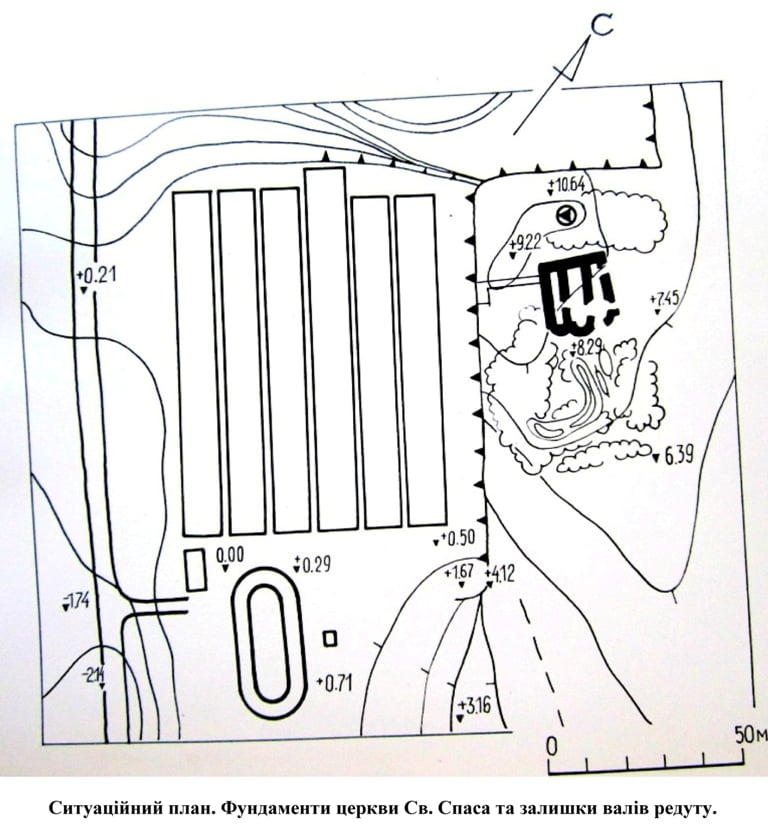 «…Австрійські окопи зі світової війни 1914–1918 рр. поперетинали мури фундаментів у кількох місцях…» (щоправда, подав помилкове датування, оскільки земляні роботи велися ще в 1895 р.).