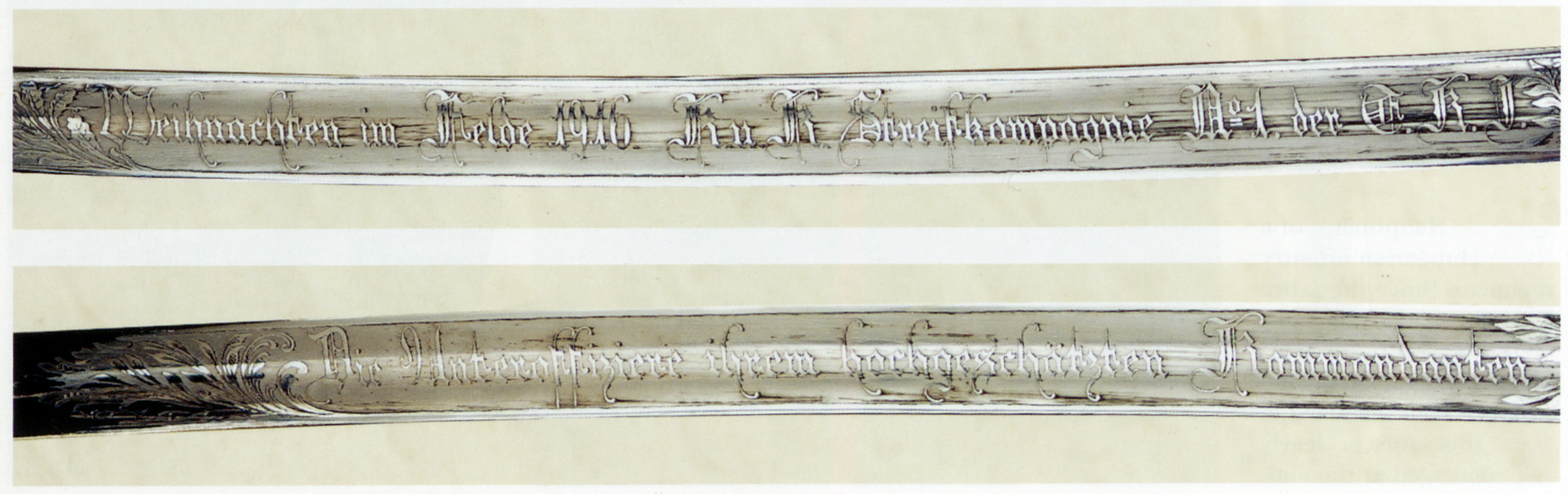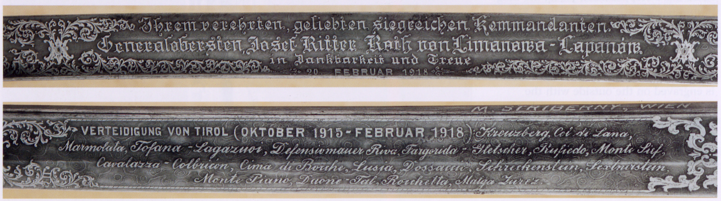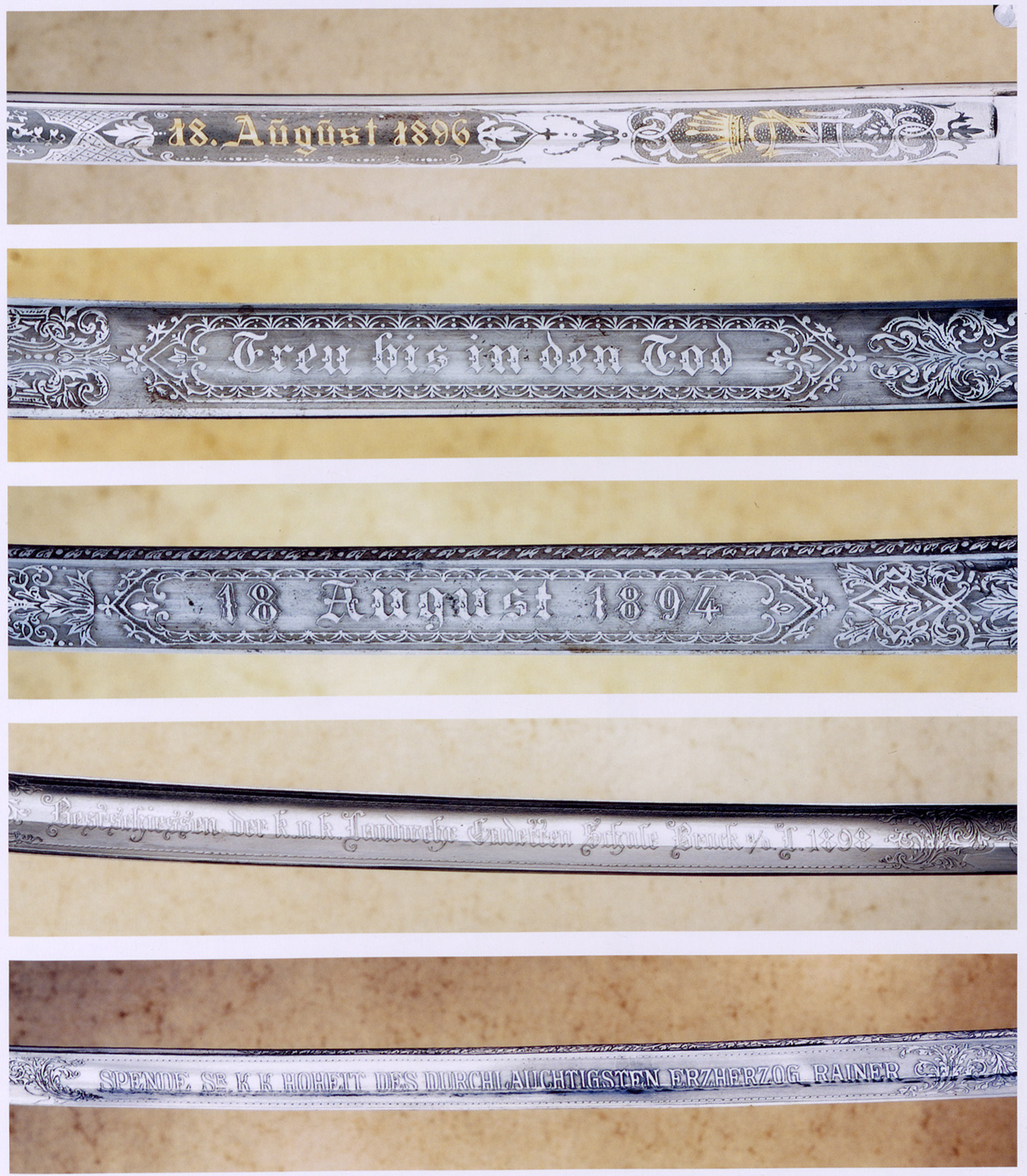 - Ерцгерцог Фрідріх, який був «k.u.k. Armeeoberkommandant» (цісарським і королівським Верховним командувачем армії) на початку Першої світової війни, тут у званні фельдмаршала. Він носить шаблю піхотних офіцерів зразка 1861 року (HGM).