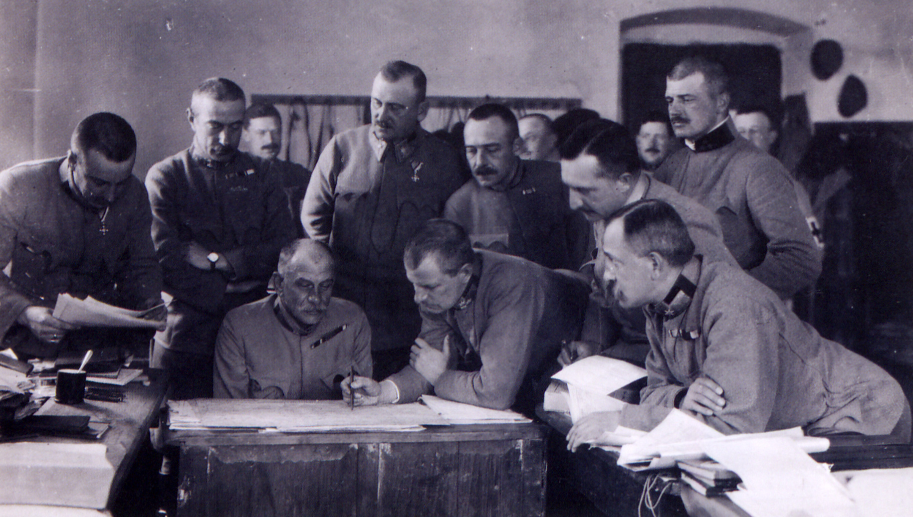 - Майбутній генерал-полковник Йозеф Рот фон Ліманова-Лапанов в оточенні офіцерів свого штабу на Північно-Східному фронті.