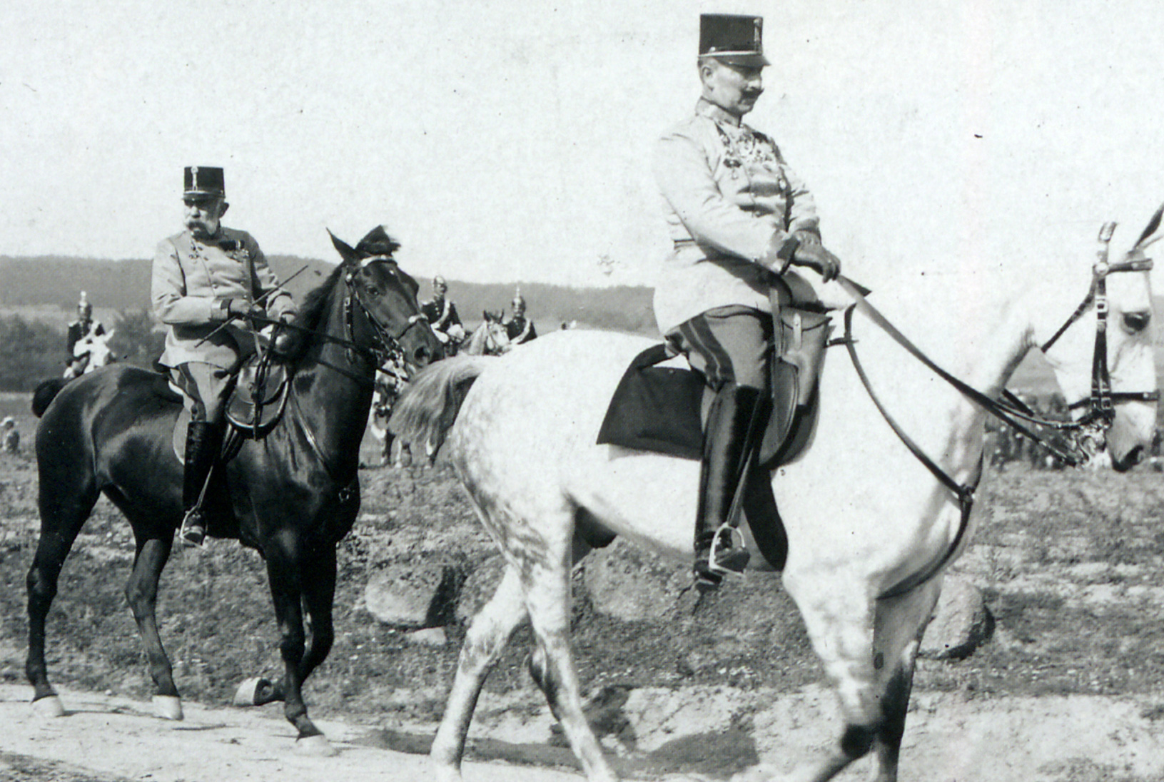 - Імператор та король Франц Йосиф І (ліворуч) та германський імператор Вільгельм ІІ на маневрах (1909)