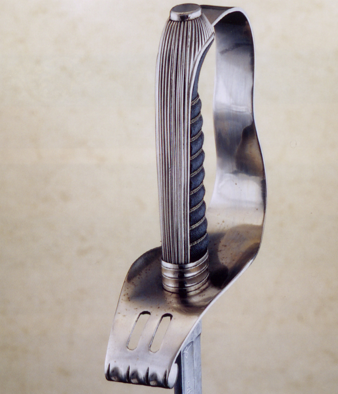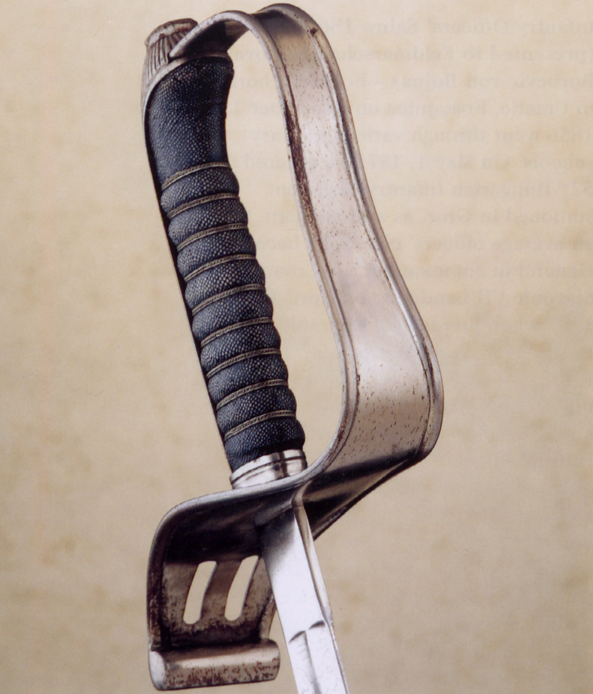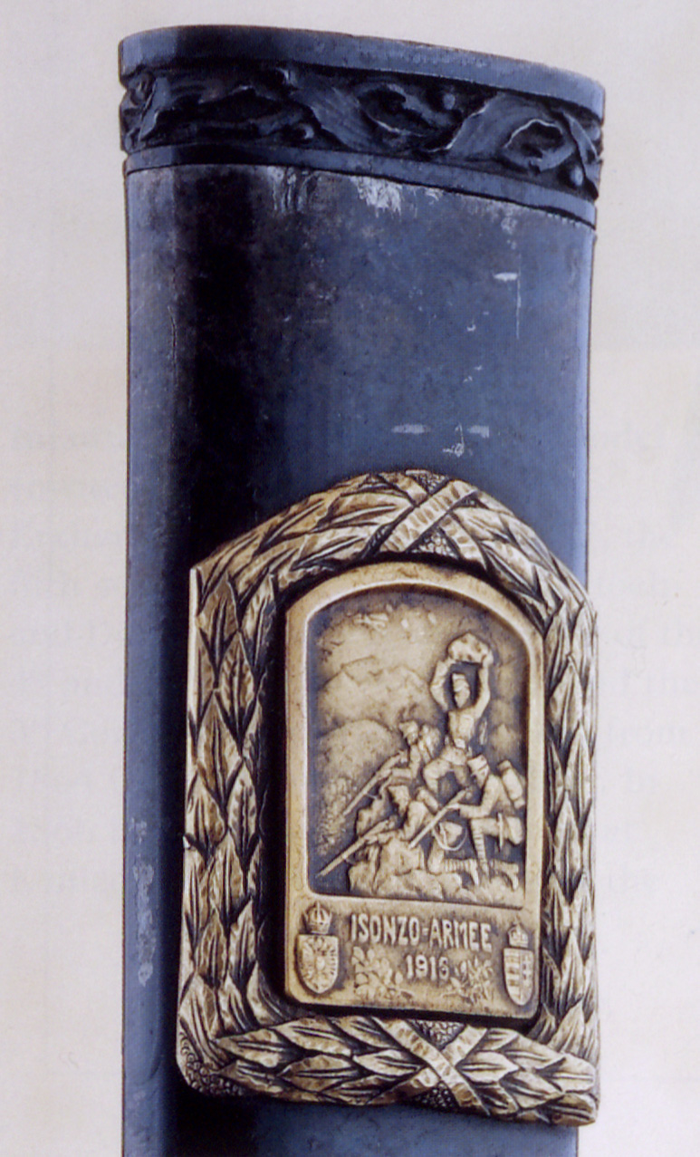 - Гауптман угорського піхотного полку. Оскільки шаблю також носили в приміщеннях, піхви часто пошкоджувалися об двері, що зачинялися. Піхви цієї шаблі чітко пошкоджені на кінці.