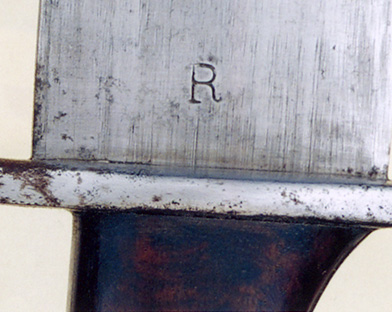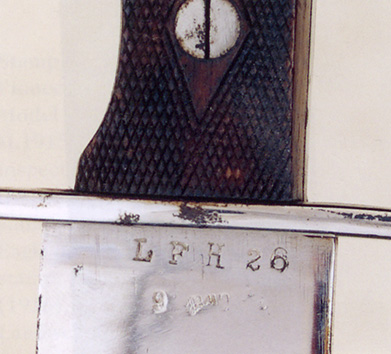 - Клеймо на клинку саперного тесака зразка 1915 року. Як правило, тесак моделі 1915 мав лише інспекційні клейма та не мав військових. На цьому тесаку нанесено клеймо перевірки у вигляді двоголового орла, рік «16» (1916) та напис «Lw» для Ландверу (HGM).