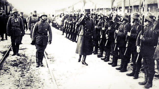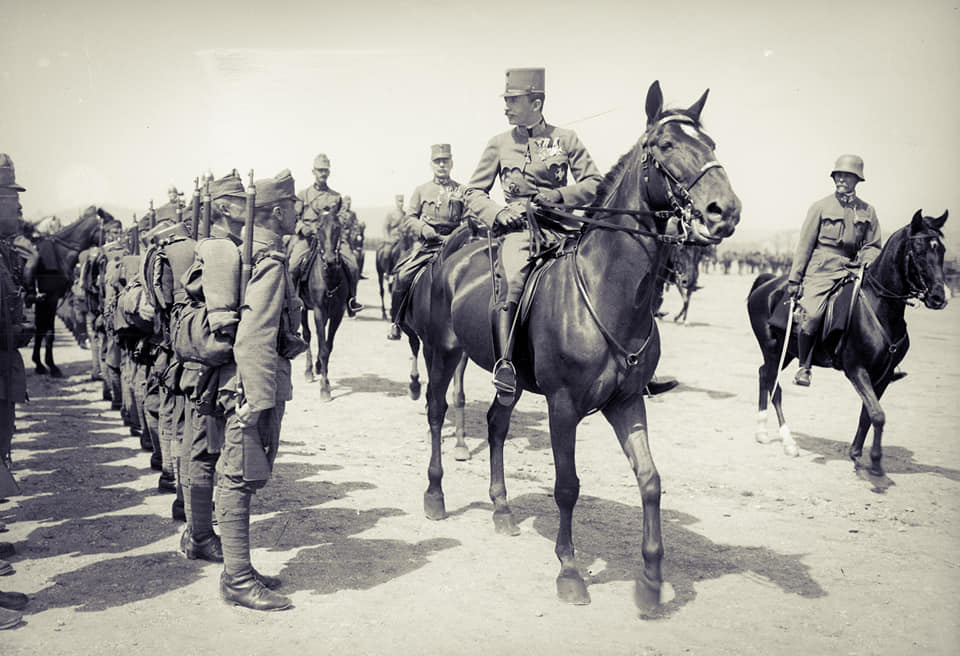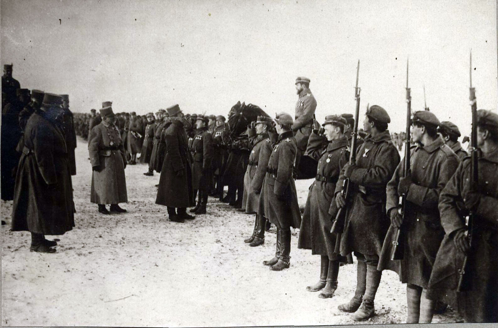 - Ерцгерцог Карл під час інспекційної поїздки на фронт. Солдати виконують команду «На плече!»