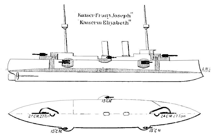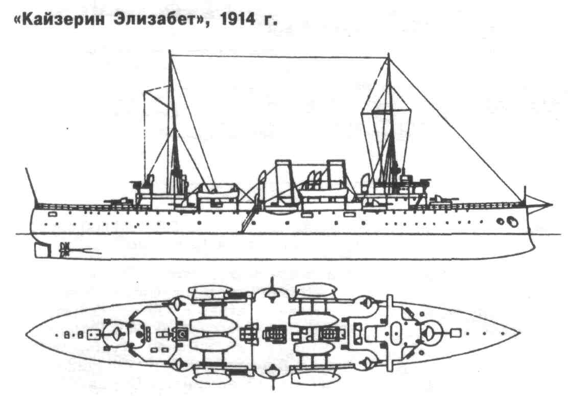 SMS «Kaiserin Elisabeth» закладений в липні 1888 року на верфі Pola Navy Yard, спущений на воду 25 вересня 1890 року, вступив до складу флоту 24 січня 1892 року, затоплений екіпажем 2 листопада 1914 року на рейді Ціндао в Китаї.