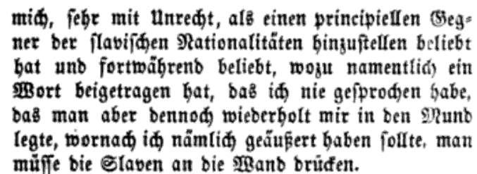 Чутку швидко підхопили. Проте 10 червня 1868 року на засіданні рейхсрату її зрештою прокоментував сам «винуватець». Тоді він саме лобіював будівництво залізниць у слов’янських регіонах імперії. І скористався нагодою, аби привселюдно заперечити, що є непримиренним противником слов’ян, як про нього говорять, і що коли-небудь говорив ті слова, які журналісти вклали в його вуста (скриншоти 1-2). А пізніше, в своїх спогадах, він стверджував, що мав окрему зустріч ще й з ватажками чеського національного руху, де заявив, що є прихильником рівного становища всіх національностей, і назвав оце «до стінки!» не інакше, як «чистою вигадкою» (скриншот 3).