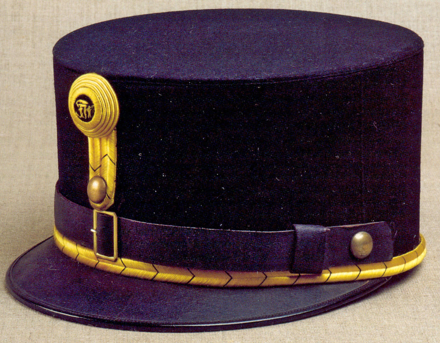 - ківер (Tschako) в піхоті спільного війська та гонведі, артилерії та гусарів мав навколо донця подвійний шовковий жовтий галун з чорним проміжком (у гонведі — з вишнево-червоними проміжком та облямівкою);