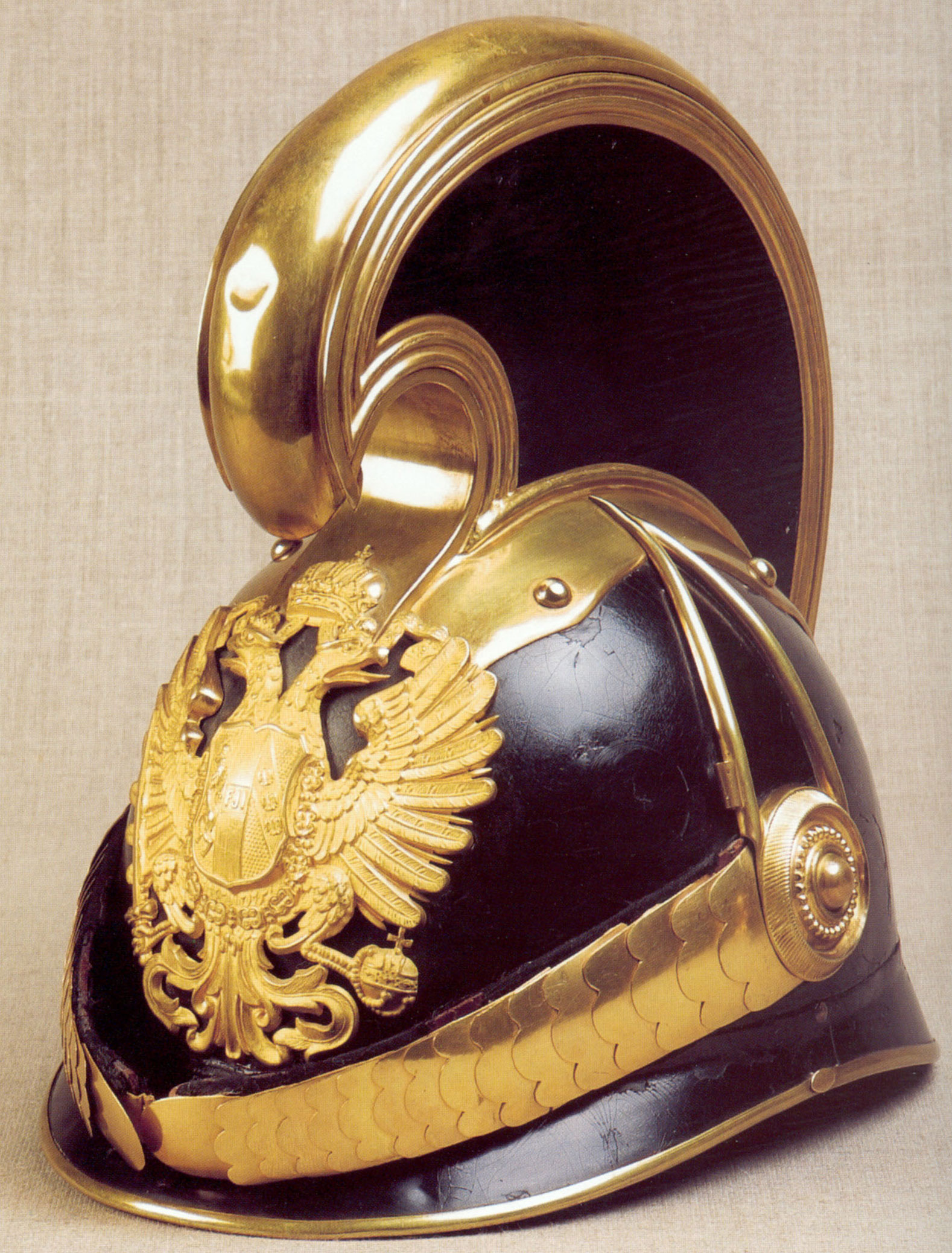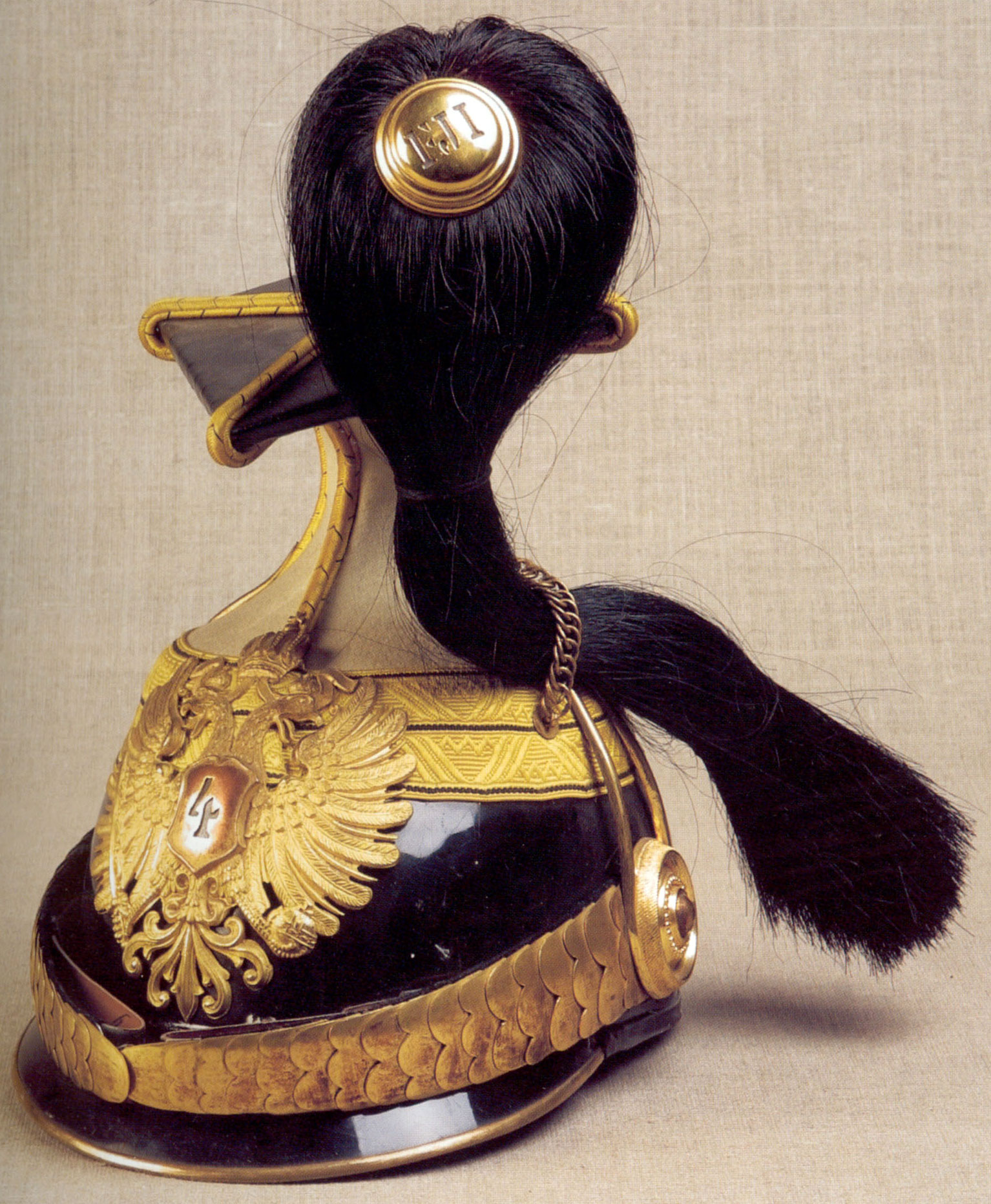 - каска (Dragonerhelm) для вахмістрів та фенріхів драгунів був зразка для нижніх чинів, однак навколо гребня мав потрійний штампований з латуні бортик. Також латунну основу гребня залишали не фарбованою на чорний, а з полірованої латуні;