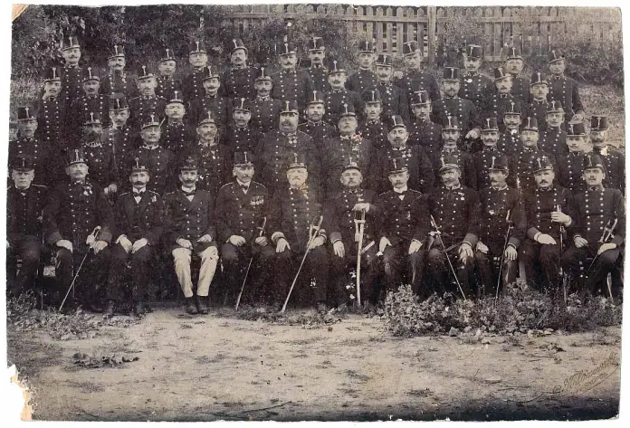 - Фото чиновників фінансової дирекції, ймовірно, м. Коломия. Найбільше представників фінансової сторожі. В центрі старший комісар фінансової сторожі 1 класу Поч. ХХ ст.