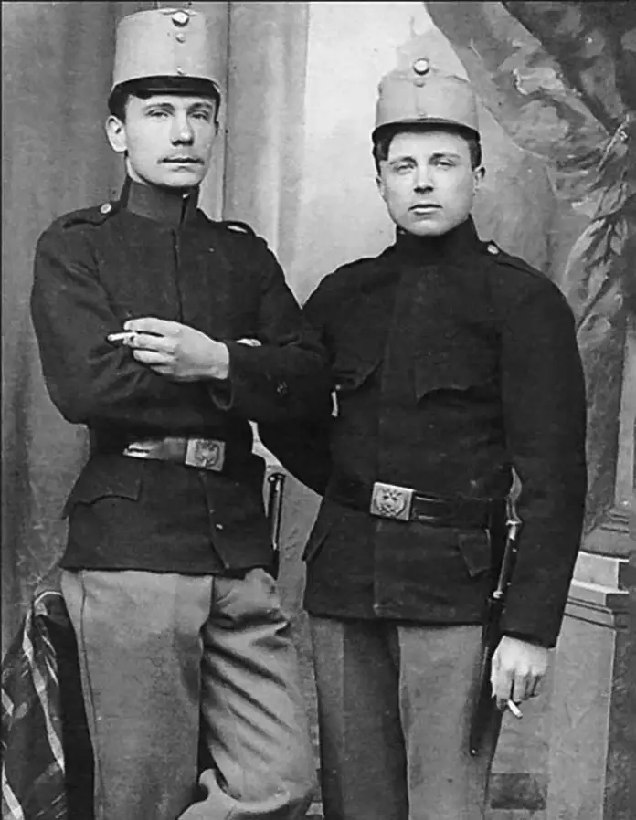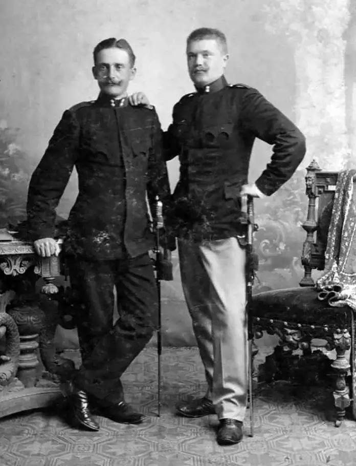 - Портрет наглядачів фінансової сторожі 1900-ті рр. зроблений у Стрию. На комірі знаки розрізнення – дві розетки. Один з них одягнутий у білі літні штани.