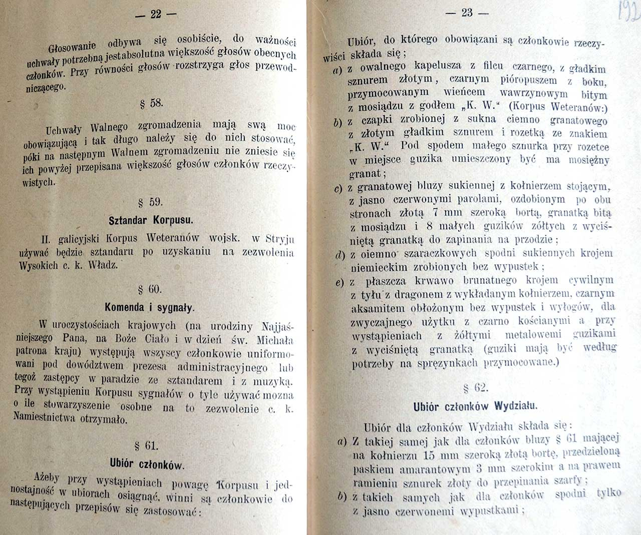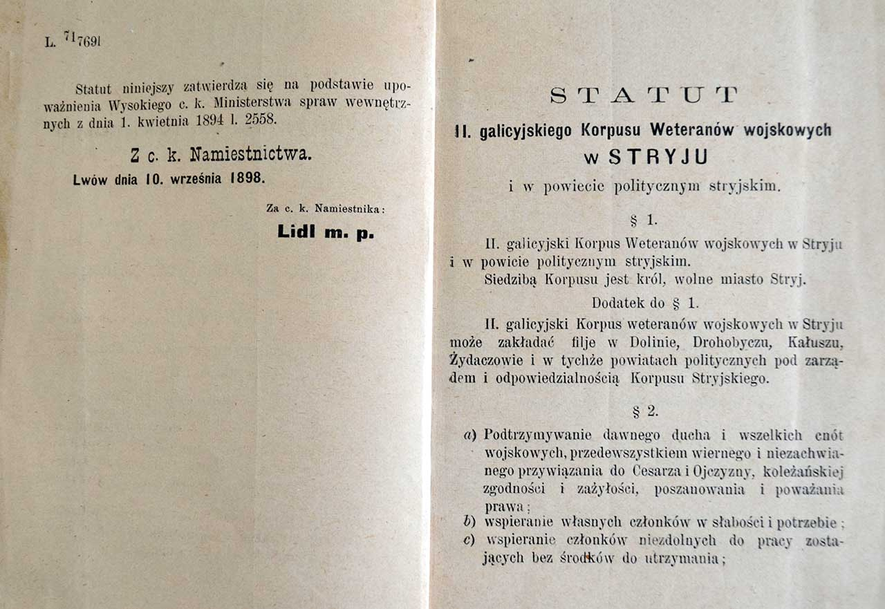 - Фрагмент статуту об’єднання ветеранів в Стрию з відомостями про уніформу