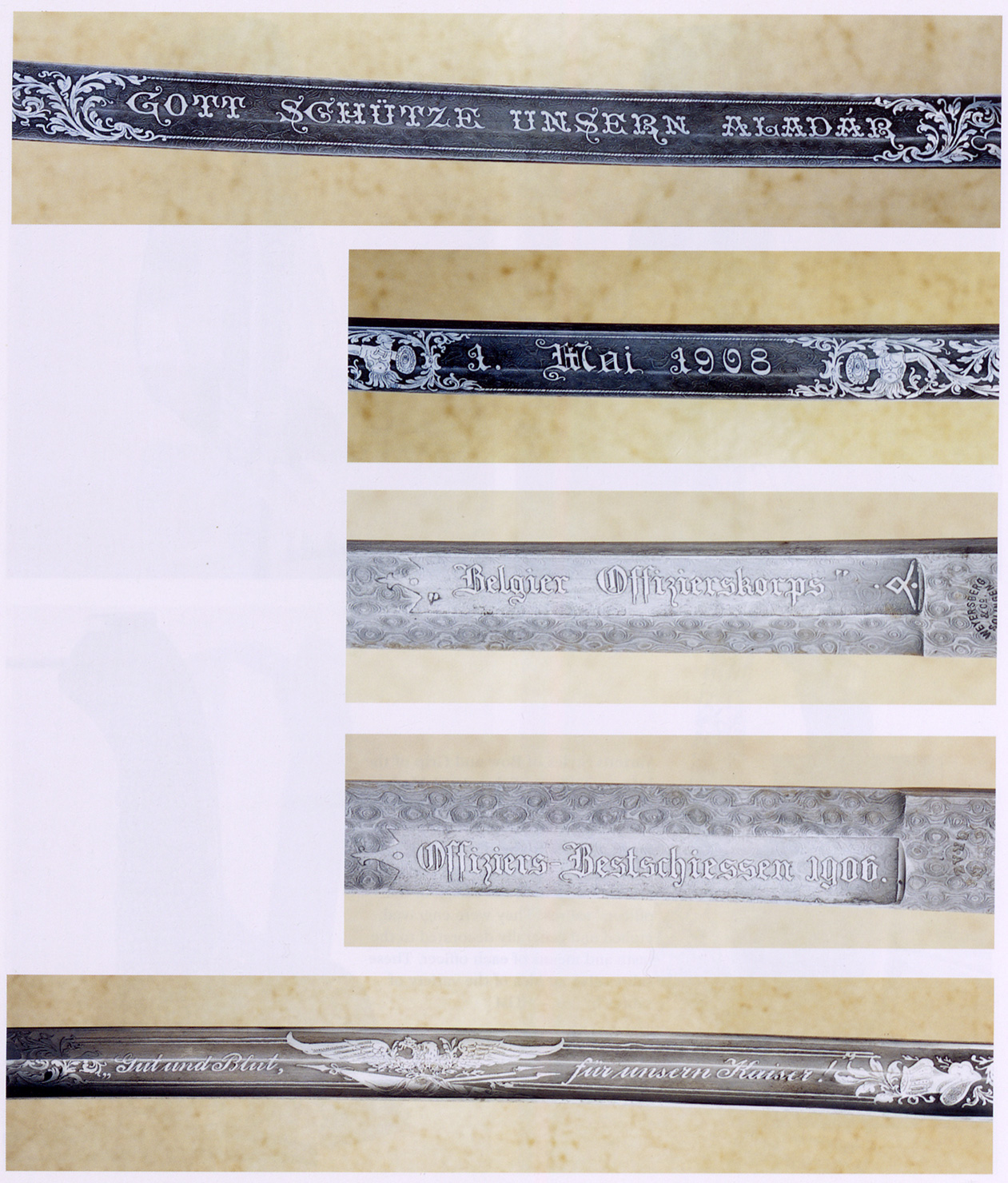 - Ерцгерцог Фрідріх, який був «k.u.k. Armeeoberkommandant» (цісарським і королівським Верховним командувачем армії) на початку Першої світової війни, тут у званні фельдмаршала. Він носить шаблю піхотних офіцерів зразка 1861 року (HGM).