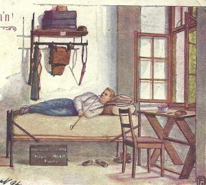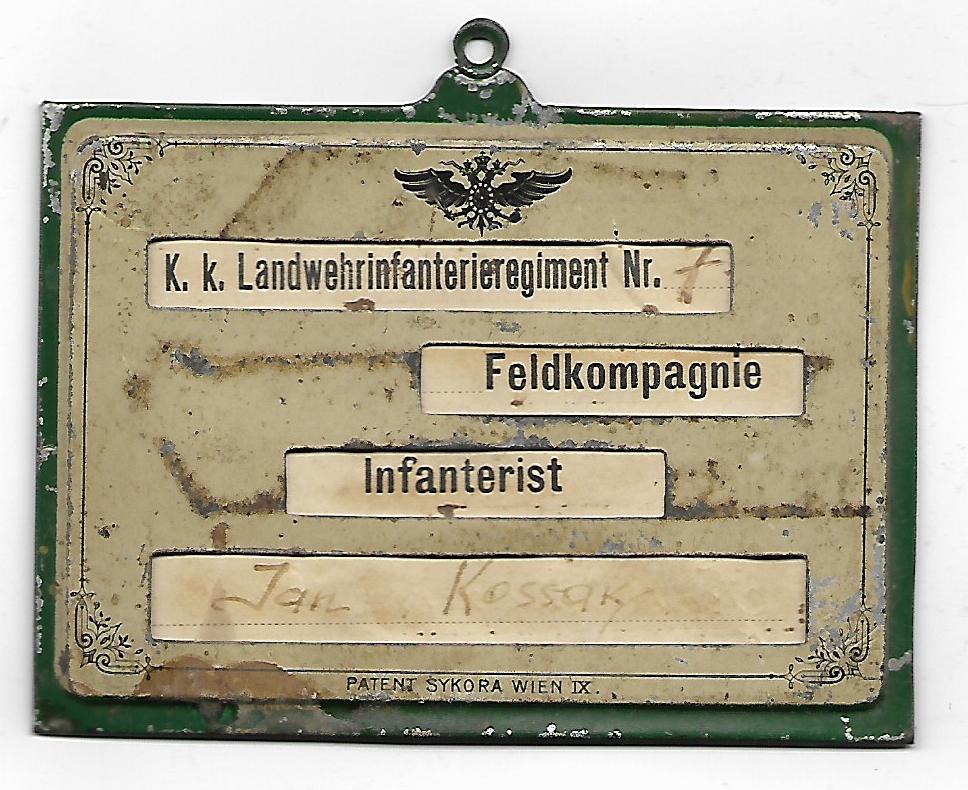 В книзі Гуго Шміда (Hugo Schmid) «Посібник унтер-офіцера» (Handbuch für Unteroffiziere), виданій автором власним коштом в 1915 році у Відні, в описі солдатського ліжка про іменні таблички жодного слова. Таблички обовʼязково мали увійти до цієї книги, що розбирає повсякденне життя військовослужбовця до останньої кістки, але… Натомість про них говориться в «Положенні про [внутрішню] службу імперських і королівських Сухопутних військ» (Dienstreglement für das kaiserliche und königliche Heer) 1909 року. В § 22, що визначає порядок у спальному приміщенні (Zimmerordnung), на стор. 60 частини I у пункті 142 сказано: «Над узголів’ям кожного ліжка стоїть табличка довжиною 11 см і шириною 8 см, на якій написані імʼя та звання людини».