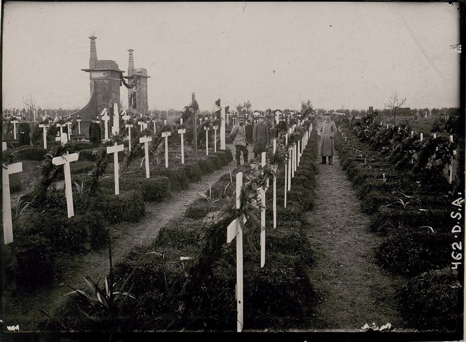 У роки Першої світової війни Стрий був важливим тиловим містом, у якому лікувались тисячі поранених різних армій. Багато з них помирали у військових шпиталях як від важких поранень, так і від інфекційних хвороб. Внаслідок цього на міському кладовищі виникло велике поле військових поховань, яке згодом було розбудоване як військовий меморіал і урочисто відкрито у 1916 році (фото 1–2). За тогочасними свідченнями, на Стрийському військовому цвинтарі знайшли свій спочинок понад 10 тисяч військових різних армій — австро-угорської, німецької, турецької та російської (фото 3–4). Переважна більшість із них померли у госпіталях під час пандемії грипу «іспанка». На жаль, на сьогоднішній день від військового меморіалу в Стрию залишилась лише урочиста арка, що нещодавно було відновлено місцевою громадою.