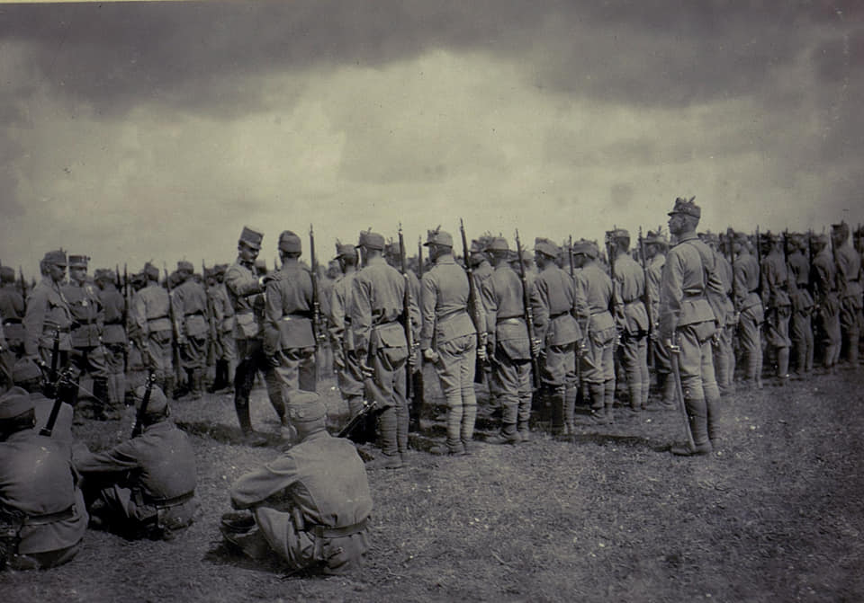 - Ерцгерцог Карл під час інспекційної поїздки на фронт. Солдати виконують команду «На плече!»