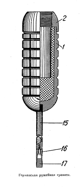 - Конструкція німецької «гвинтівочної гранати зразка 1913 року» з російської настанови по трофейних австрійських і німецьких гранатах 1917 року (ww1.milua.org)