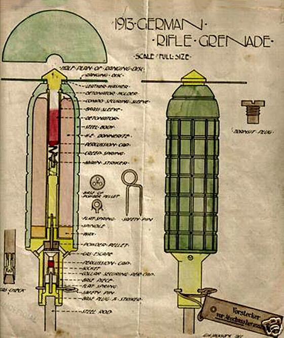 - Деталі німецької «гвинтівочної гранати зразка 1914 року» (ww1.milua.org)