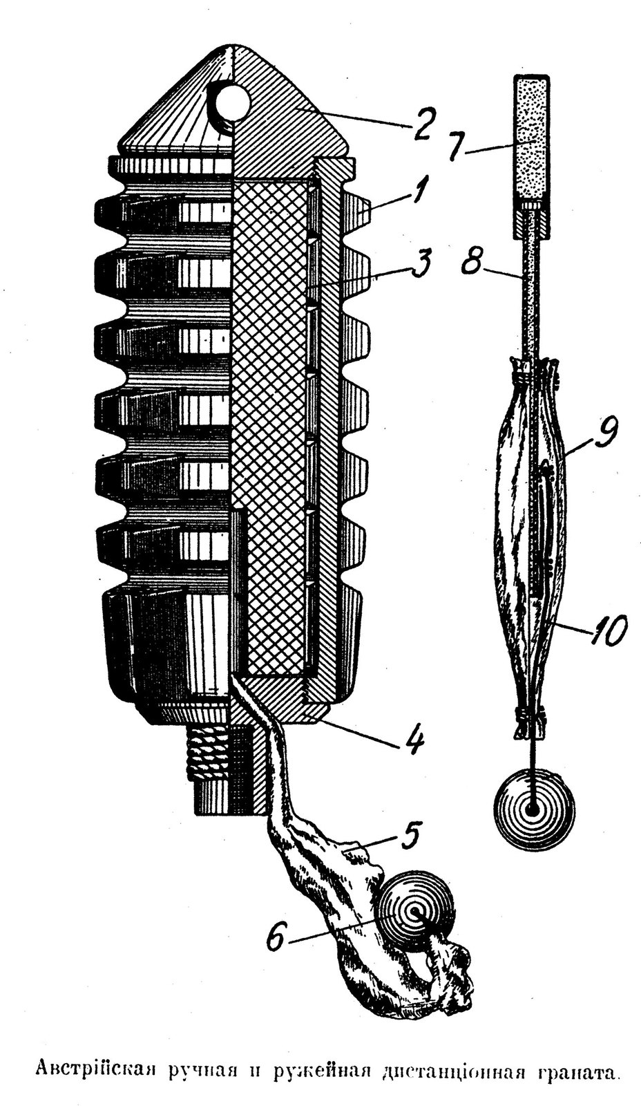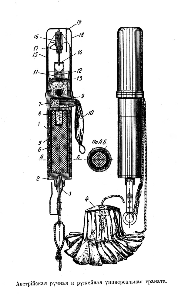 Креслення «гвинтівочної гранати з тимчасовим запалом зразка 1916 року» (Mantoan N. Bombe a mano austriache 1914–1918. — Udine: Paolo Gaspari editore, 2001. — P. 86.)