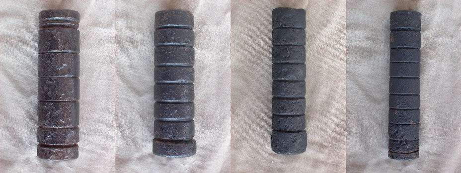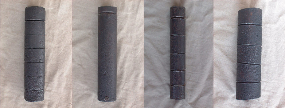 - Різні ракурси «гвинтівочно-ручної гранати з тимчасовим запалом» з нагвинченими балістичними ковпачками та денцями для накручування шомпола (фото з колекції автора)