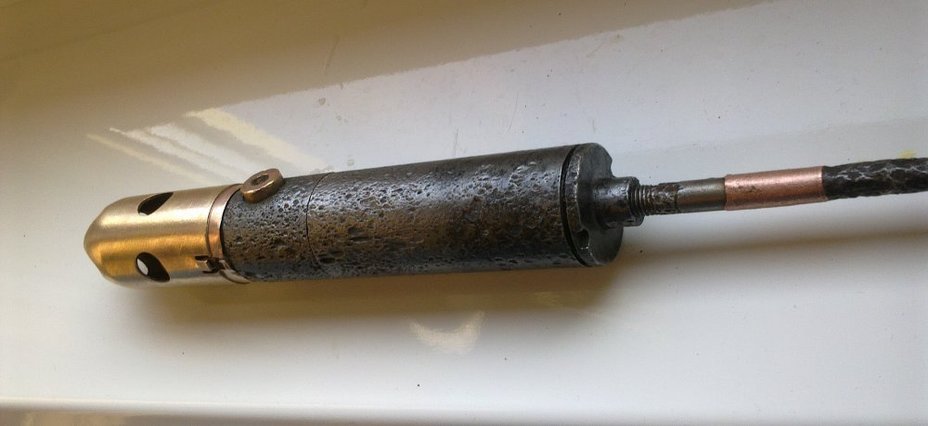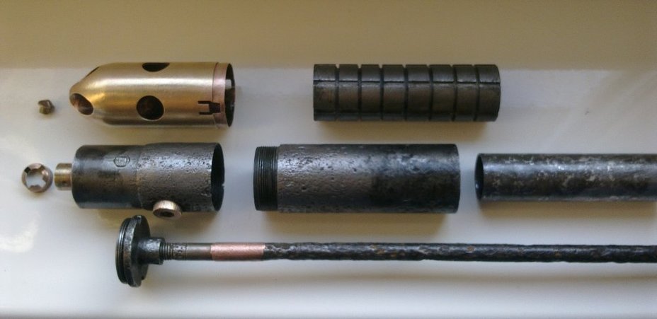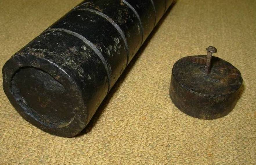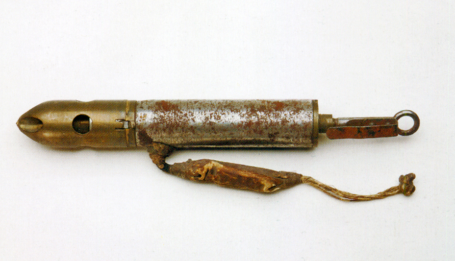 - Головна частина корпусу гранати типу «Lakos» (вибуховий заряд видалено) і запал з ударником (delcampe.net)