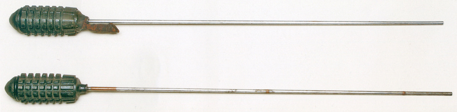 - «Гвинтівочно-ручна граната з тимчасовим запалом» у стволі гвинтівки. Зліва — приціл-квадрант, справа — запобіжний чохол із парафінованого паперу з тертковим запалом всередині (Ortner C. Storm Troops: Austro-Hungarian Assault Units and Commandos in the First World War. Tactics, Organisation, Uniformes and Equipment. — Vienna: Verlag Militaria, 2005. — P. 156.)