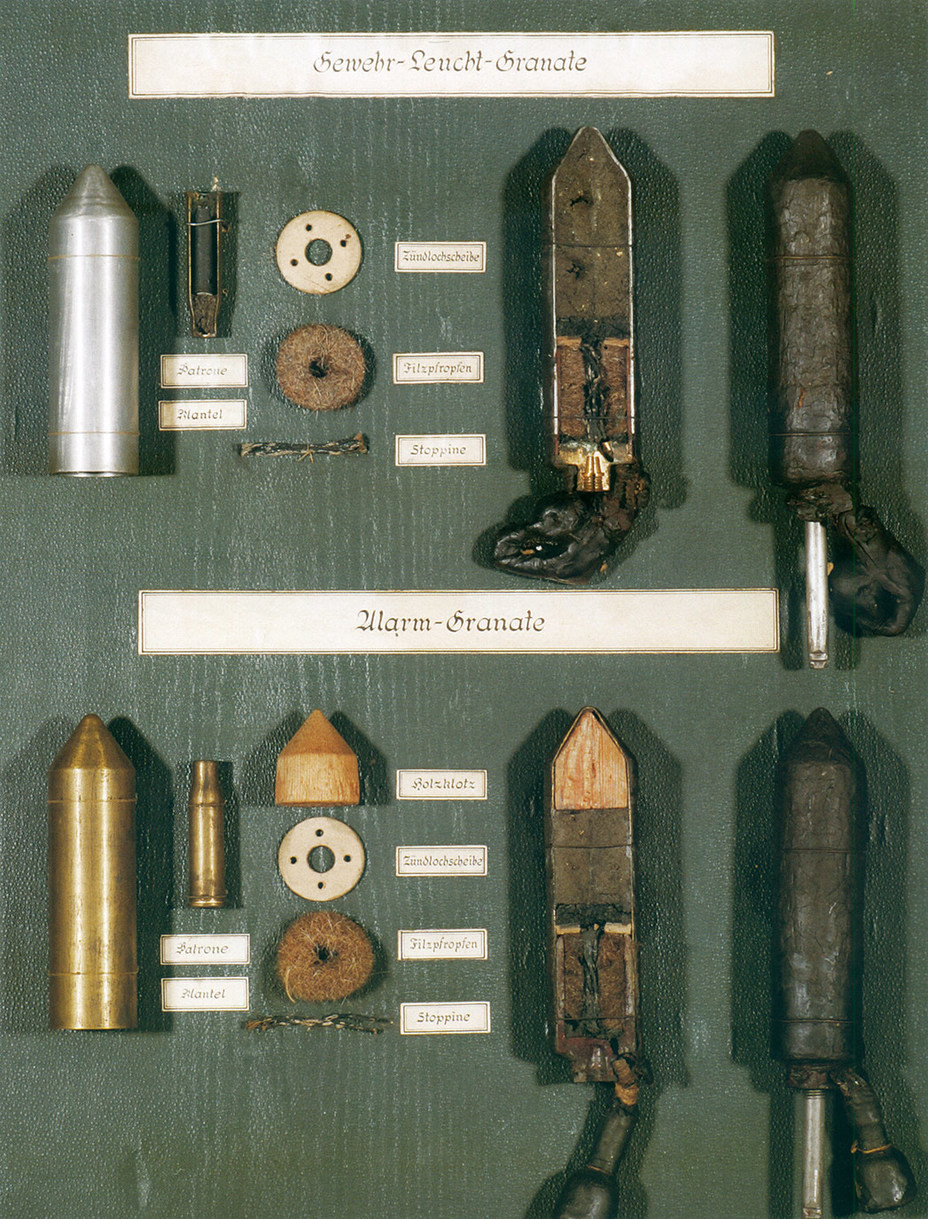 - «Освітлювально-сигнальна граната з тимчасовим запалом» у розрізі та її деталі (Ortner C. Storm Troops: Austro-Hungarian Assault Units and Commandos in the First World War. Tactics, Organisation, Uniformes and Equipment. — Vienna: Verlag Militaria, 2005. — P. 159.)