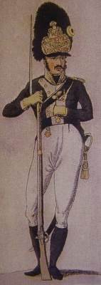 У гренадерів, у свою чергу, портупея була загалом золото-чорною, розрізнення звань здійснювалося за допомогою погонів — офіцери мали золоті плечові шнури, унтер-офіцери — золоті еполети, а гренадери на лівому плечі золотий шнур з китицями. Офіцери, крім того, носили поясний шарф.