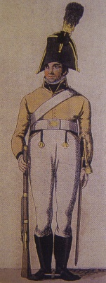 [27] Цю форму було прийнято міщанським корпусом у Віденському Новому Місті. В 1793 році місцевим офіцерам та унтер-офіцерам було дозволено використовувати віденську уніформу, пізніше цей дозвіл отримала і рядова служба. Білі штани були замінені синіми в 1840 році. Фюзилери спочатку носили капелюхи, з 1824 року — ківери. Гренадери, засновані в 1810 році, мали ведмежі шапки (Ausstellung…, c.d., с. 65, 191-192).Щодо цього корпусу див. також Seznam…, c.d., с.143, де вказано три сотні з 240 осіб.