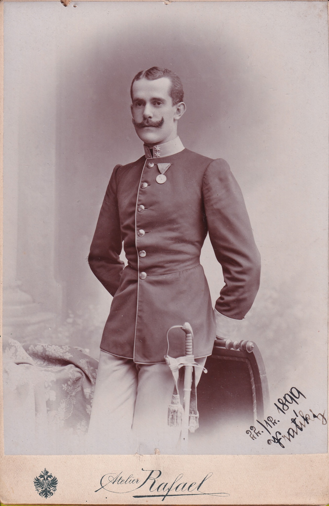 На перших двох фото, датованих 1899 та 1903 роками, зображено оберлейтенанта, у парадному та повсякденному одностроях, нагородженого «Ювілейною медаллю для військовослужбовців». Особливості одностроїв говорять про приналежність до «німецької» піхоти спільного війська. Усі фото підписані чеською мовою, з чого можна було б зробити висновок, що він чех і служив у чеському полку. Але ми припустили, що колір полку (тобто колір коміра та манжетів парадного кителя типу Waffenrock) і місто, де зроблено фото, можуть збігатися, якщо фото зроблено по місцю служби. У Брюні (зараз Брно у Чехії), в 1899 році квартирували три піхотних полки. По кольору більше за інших підійшов 49-й піхотний полк спільного війська барона фон Гесса (k.u.k. Niederösterreichisches Infanterieregiment Freiherr von Hess, Nr. 49), що набирали у Середній Австрії. Його колір був «щуче-сірий» (hechtgrau), тобто той самий, що й штанів оберлейтенанта. Те, що національність офіцера не співпала з національною приналежністю його можливих підлеглих, не має нас засмучувати — понімечення чехів було настільки шаленим, що в ті часи чеську вважали мовою прислуги. Чехи вивчали німецьку з дитинства, що, натомість, допомагало їм легко асимілюватися в чужому середовищі. Наприклад, напередодні Першої світової війни у Відні чехів мешкало більше ніж у Празі!